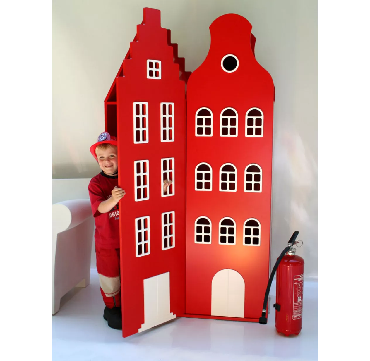 L’armoire Amsterdam inspirée des maisons hollandaises est devenue une icône de la marque néerlandaise Kast Van Een Huis. En janvier 2010, elle a remporté à l’unanimité le prix « Découverte » du Salon Maison & Objet. Nous avons eu un vrai coup de coeur pour cette pièce de mobilier enfant aux très belles finitions, qui se transforme sans encombrement en maison de poupées géante. Un vrai rêve d’enfant !