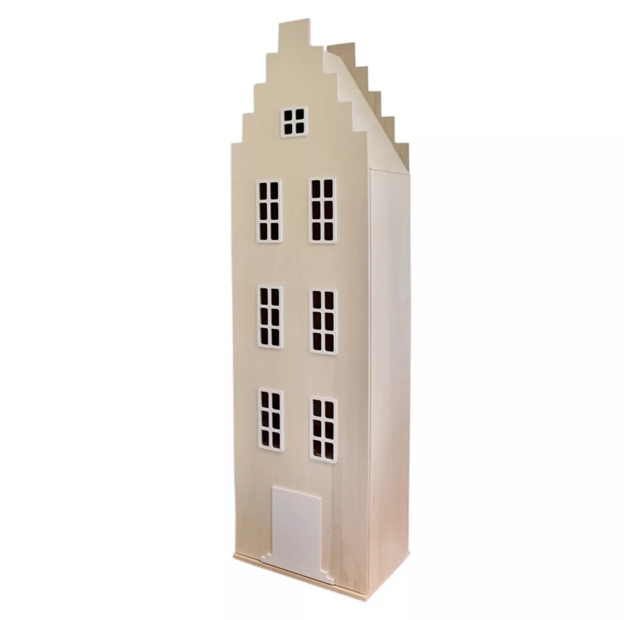 L’armoire Amsterdam inspirée des maisons hollandaises est devenue une icône de la marque néerlandaise Kast Van Een Huis. En janvier 2010, elle a remporté à l’unanimité le prix « Découverte » du Salon Maison & Objet. Nous avons eu un vrai coup de coeur pour cette pièce de mobilier enfant aux très belles finitions, qui se transforme sans encombrement en maison de poupées géante. Un vrai rêve d’enfant !
