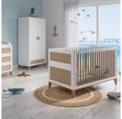 Lit Bébé évolutif Bois Et Cannage Rotin Nami 70x140cm – Blanc