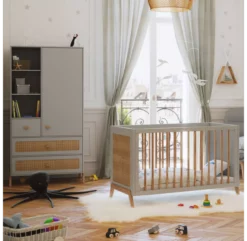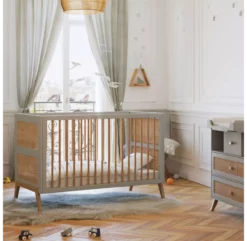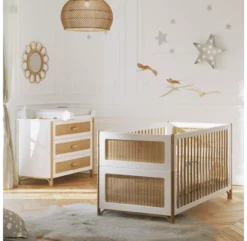 Lit Bébé évolutif Mini+ Wood Sans Kit De Conversion – Blanc/Chêne