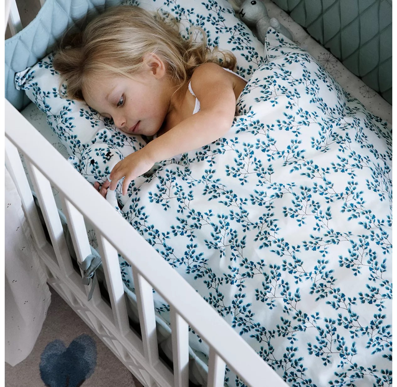 Coup de coeur pour cet adorable drap housse bébé imprimé de fleurs bleues ! Disponible en 2 tailles: bébé et junior, il s’associe parfaitement à la gigoteuse Fiori de Cam Cam dans le même motif mais supporte tout à fait d’être associé à du linge de lit uni pour une ambiance plus zen. Fiori est un motif textile coup de coeur chez Les Enfants du Design car il offre un style à la fois graphique, design et romantique. Parfait pour les bébés fille comme pour les bébés garçon pour une déco de chambre raffinée et tendance.