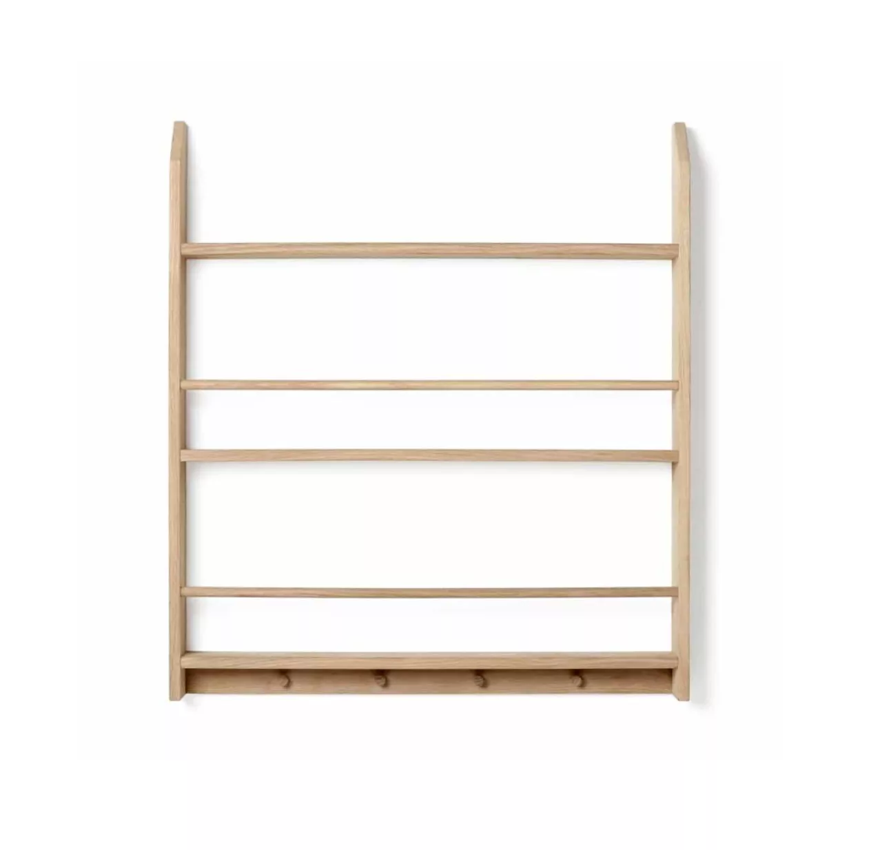 Les étagères Eli de la marque KAS Kopenhagen sont aussi multi fonction que les lits évolutifs de la même collection. Elles associent selon vos besoins : étagère simple, étagère pour livres et patères dans un style minimaliste, intemporel et résolument design. L’étagère Eli Plate est constituée de 2 étagères pour livres et d’un porte-manteau à 4 patères. Idéale pour accrocher paniers suspendus, baladeuse et petits accessoires, l’étagère Eli Plate est une bonne alternative au chevet pour un lit superposé ou un lit mezzanine.