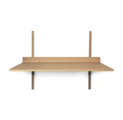 Le système modulaire Sector revisite l’étagère murale du milieu du siècle dans une version moderne et fonctionnelle. Le système mural Sector affirme une simplicité robuste dans un esprit naturel et minimaliste. Cette version du bureau mural Sector associe placage de chêne naturel et laiton noirci. Il est aussi disponible en placage de frêne teinté noir et ses supports en laiton existent également en laiton poli. Le bureau mural Sector de Ferm Living se fixe au mur avec des montants en bois massif et des vis apparentes. Il est idéal pour créer un espace de travail dans une petite chambre, un hall d’entrée ou dans un coin du salon. Il s’associe parfaitement aux étagères Sector qui se déclinent dans les mêmes couleurs et finitions.