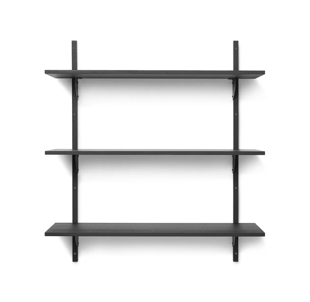 Le système modulaire Sector revisite l’étagère murale du milieu du siècle dans une version moderne et fonctionnelle. L’étagère Sector affirme une simplicité robuste dans un esprit naturel et minimaliste. Dans cette version Large et triple, l’étagère Sector associe placage de frêne teinté noir et laiton noirci. Elle est aussi disponible en placage de chêne naturel et ses supports en laiton noirci existent également en laiton poli. L’étagère Triple Sector large de Ferm Living se fixe au mur avec des montants en bois massif et des vis apparentes. Elle est idéale pour mettre en scène vos objets préférés dans une chambre enfant, un salon, des plantes ou des pots de rangement dans une cuisine. Elle s’associe parfaitement au bureau mural Sector qui se décline dans les mêmes couleurs et finitions.
