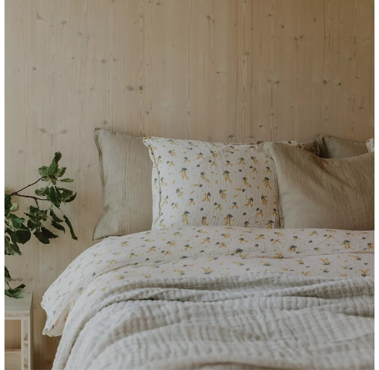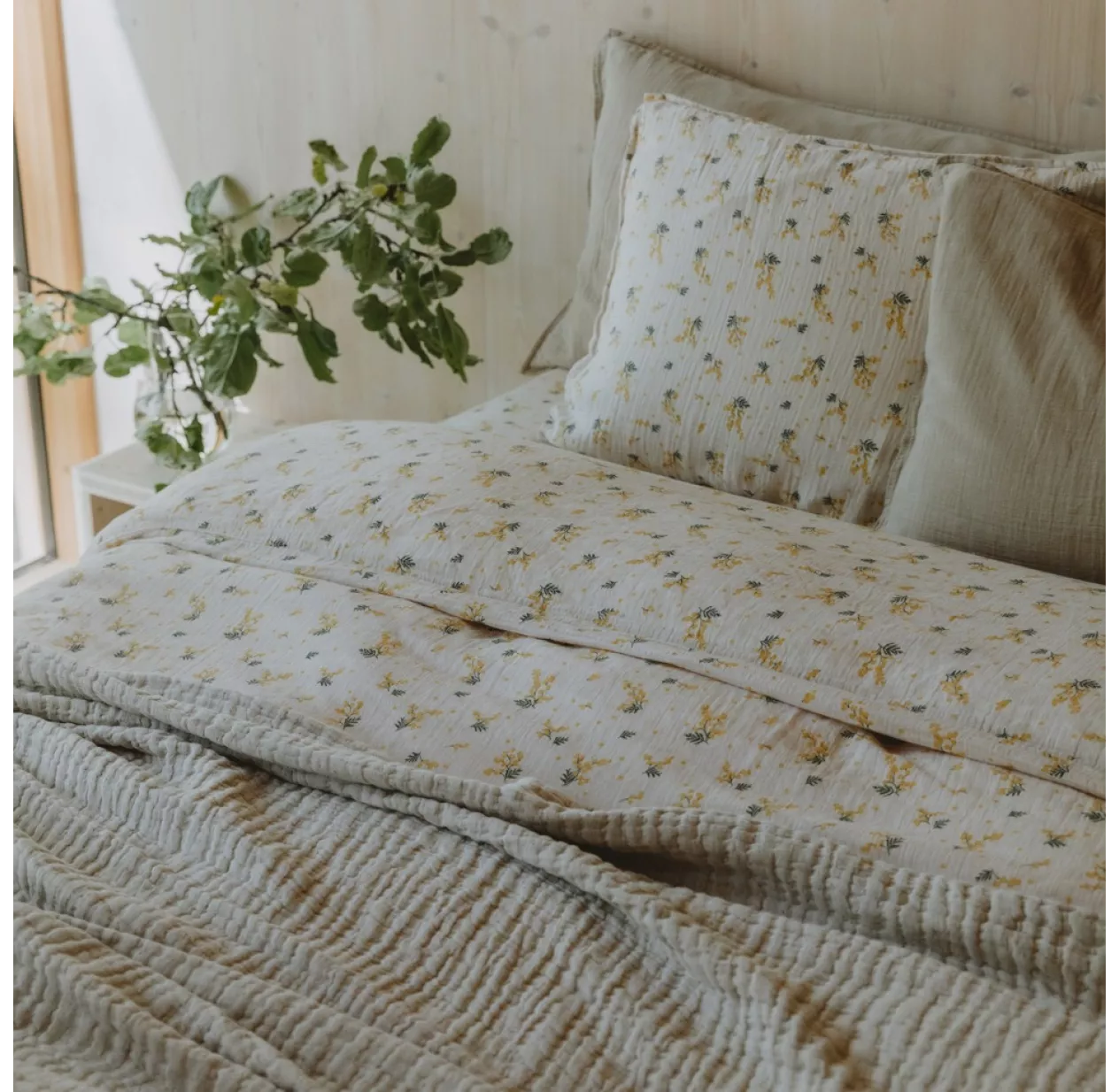 Coup de coeur pour la toute dernière housse de couette double Mimosa de Garbo&Friends dans une mousseline de coton toute douce et en format adulte ! Son motif de Mimosa raffiné et délicat lui donne un caractère unique. Cette housse de couette s’associe à merveille à du mobilier ancien pour un style romantique un brin désuet. La parure de lit Mimosa de Garbo & Friends fait souffler un petit air de nostalgie et nous ramène en enfance avec poésie. Pile dans la tendance rétro vintage du moment, la housse de couette double Mimosa Garbo&Friends sera votre alliée pour une chambre déco dans l’air du temps.