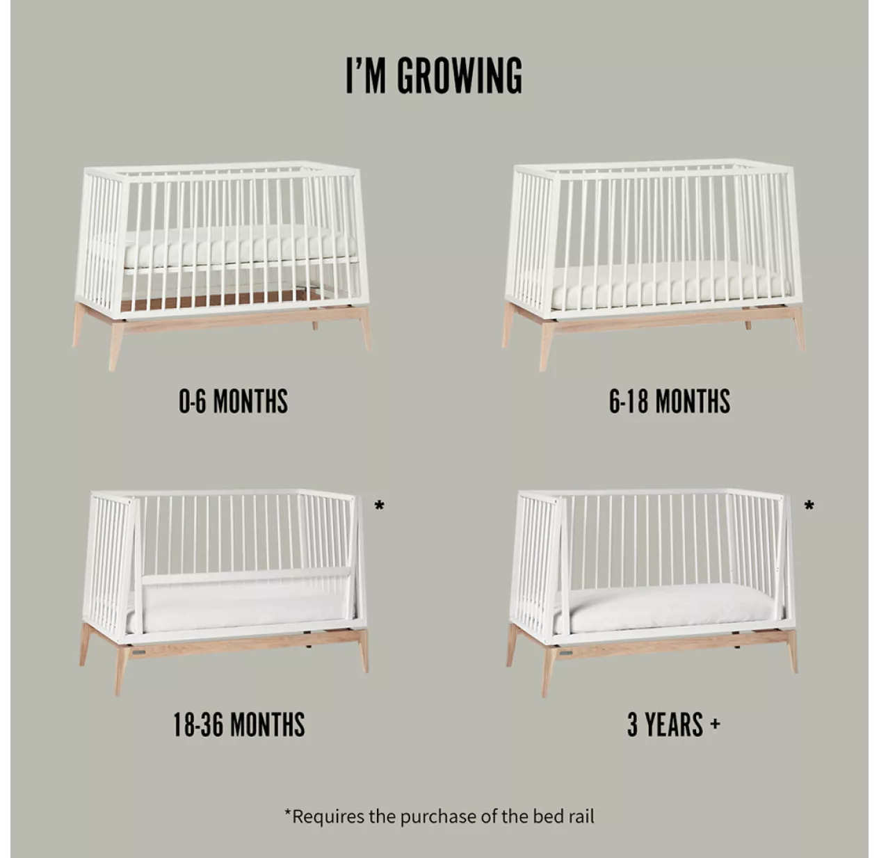 Ce lit bébé évolutif aux lignes épurées qui jouent avec les obliques appartient à la toute nouvelle collection Luna de Leander. Le lit bébé Luna offre 2 hauteurs de sommier pour accompagner votre bébé de la naissance jusqu’à 6 ans environ. Il se transforme en lit junior puis en sofa grâce au kit Luna Barrière / Sofa vendu séparément.
