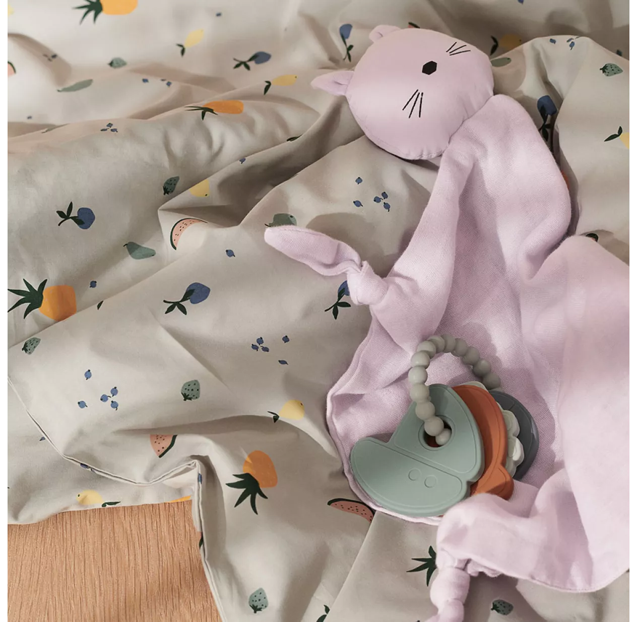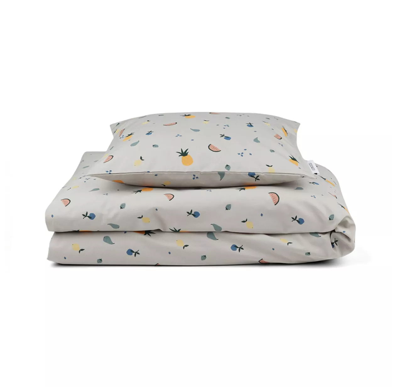 Housse de couette 100 x 140 cm, taie d’oreiller 40 x 45 cm.