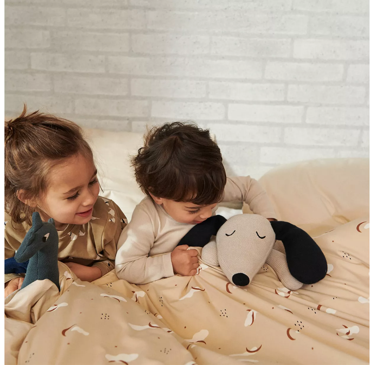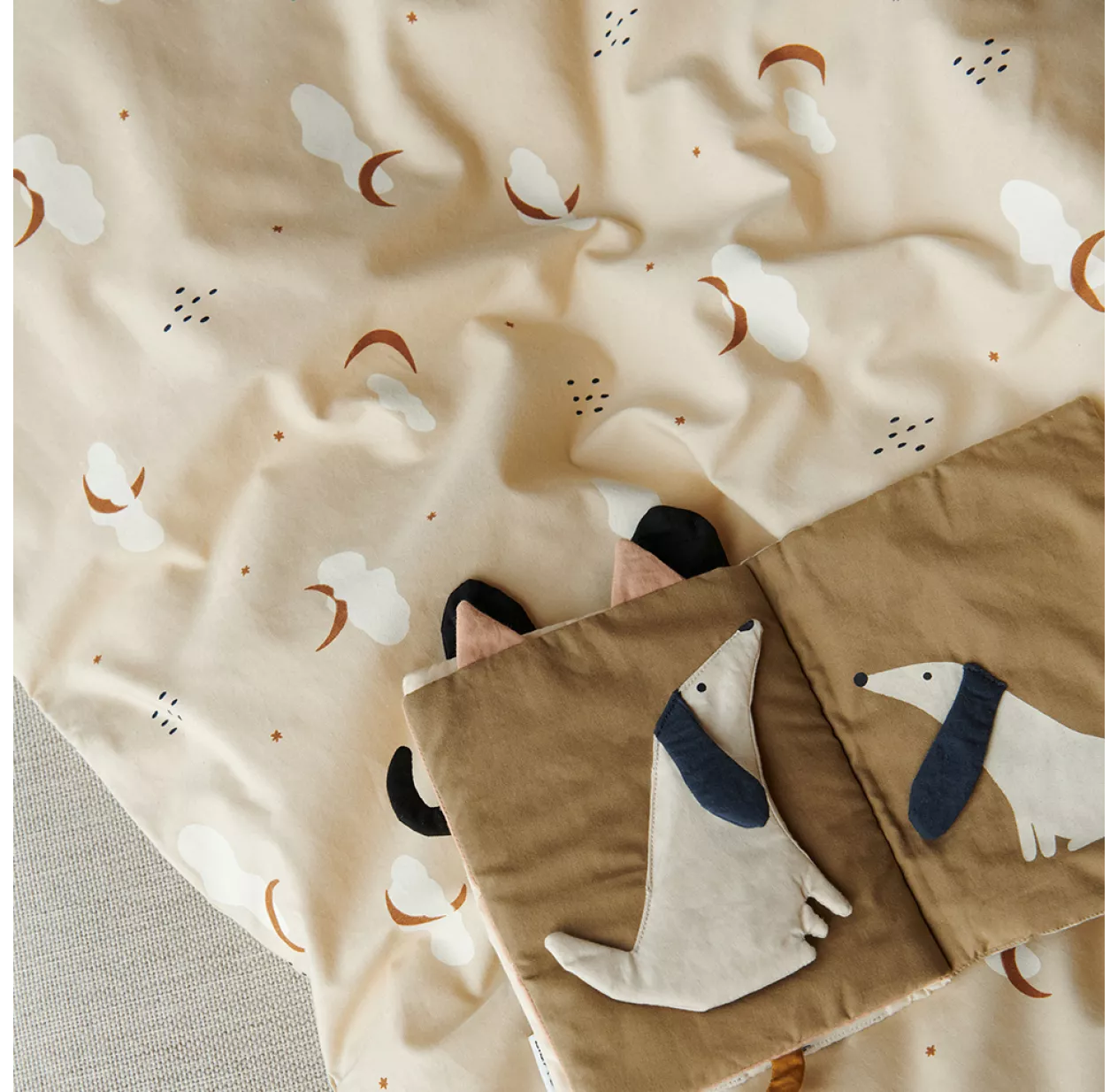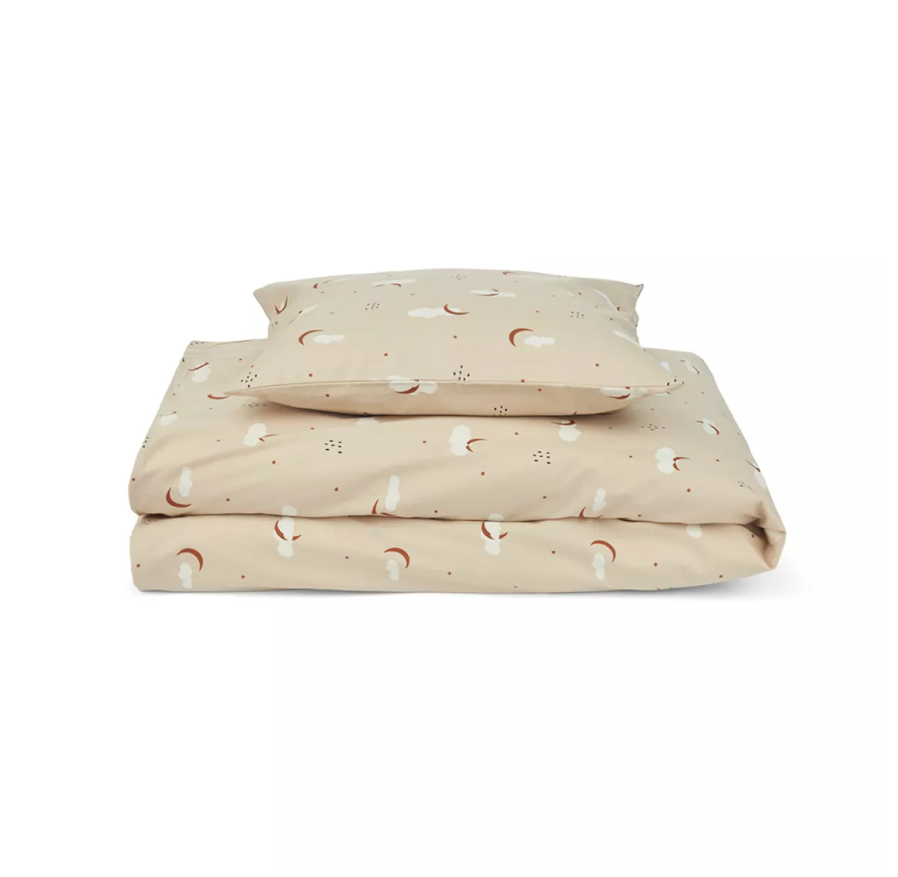 Housse de couette 100 x 140 cm, taie d’oreiller 40 x 45 cm.