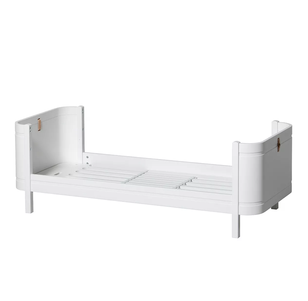 Dimensions lit junior Mini+ Wood : largeur 74 cm, longueur 166 cm et hauteur 57,5 cm.