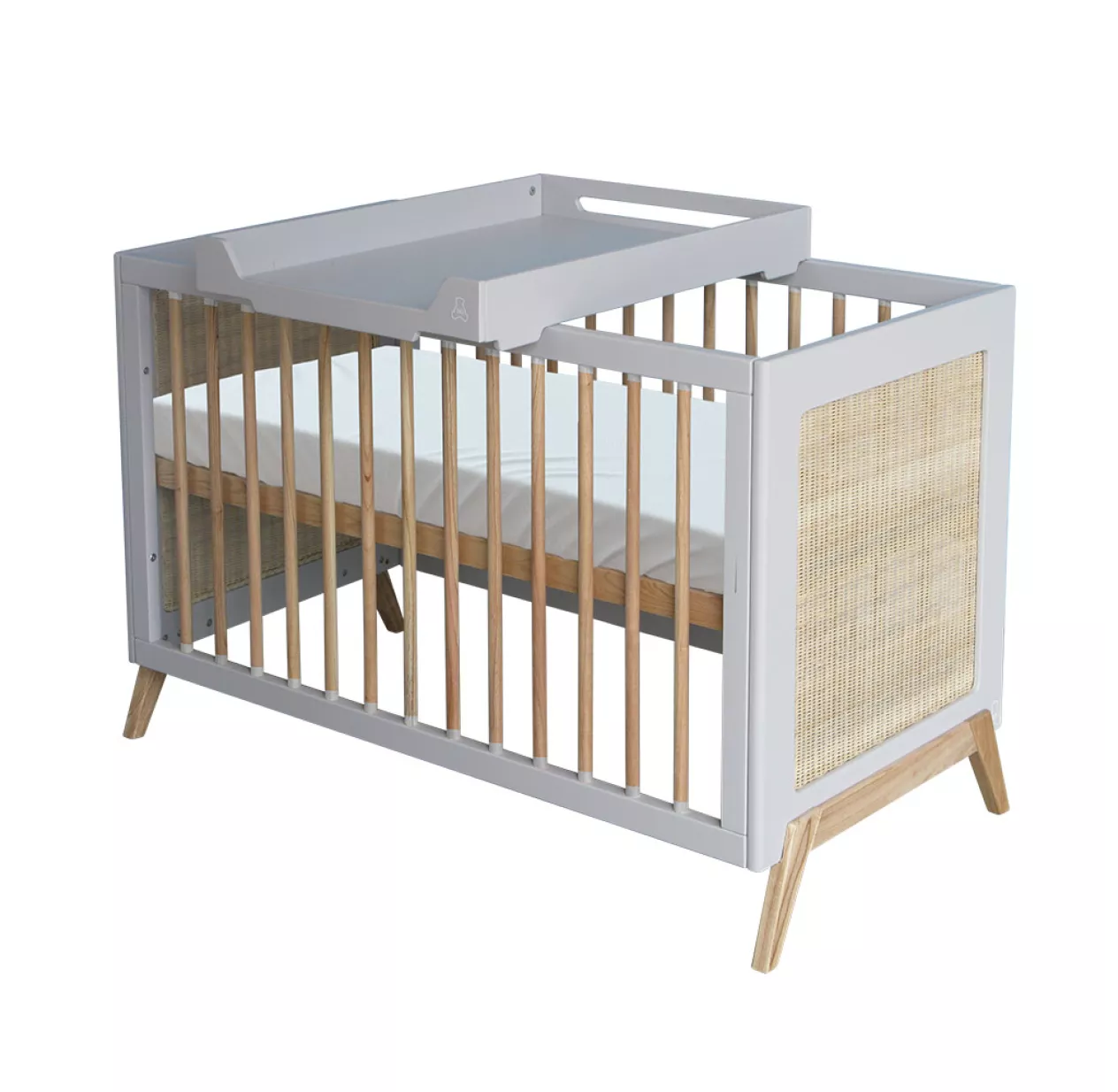 Le lit bébé Marélia Théo est un lit évolutif dont le couchage en 60 x 120 cm permet d’accompagner votre bébé de la naissance jusqu’à 3 ans environ. Son sommier est réglable en 2 hauteurs. Le lit bébé Marélia peut être associé au plan à langer qui se fixe directement sur les rebords du lit. Un kit de conversion disponible en option vous permet de transformer ce lit bébé en un élégant lit junior. Le design sobre et épuré du lit Marélia Théo est idéal pour une chambre bébé durable. En associant subtilement bois et rotin dans ses collections de mobilier enfant, la marque Théo propose un style de chambre à la fois contemporain et rétro qui apporte un vent de fraîcheur dans l’univers de la déco enfant.