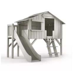 Quel enfant n’a jamais rêver de dormir dans une cabane ? Le mythique lit cabane de Mathy by Bols perché à 80 cm de haut est maintenant disponible avec une plateforme latérale équipée d’un toboggan qui peut se fixer selon votre préférence sur le côté gauche ou le côté droit. Adapté à l’enfant dès 6 ans, il dispose d’une échelle pour un accès facile. Son sommier perforé en MDF mélaminé offre un couchage en 90 x 190 cm. Nous vous recommandons un matelas d’une hauteur maximum de 14 cm. Partant du principe que l’enfant passe énormément de temps dans sa chambre, la marque Mathy by Bols a eu à coeur de concevoir un mobilier qui participe à son évolution, lui permettant d’expérimenter, de jouer et d’apprendre dans une atmosphère où il se sentirait en sécurité. C’est dans cette perspective que le lit cabane Mathy by Bols a été imaginé. Il est évolutif, vous pourrez lui associer un deuxième lit pour former un lit superposé ou retirer le toboggan.