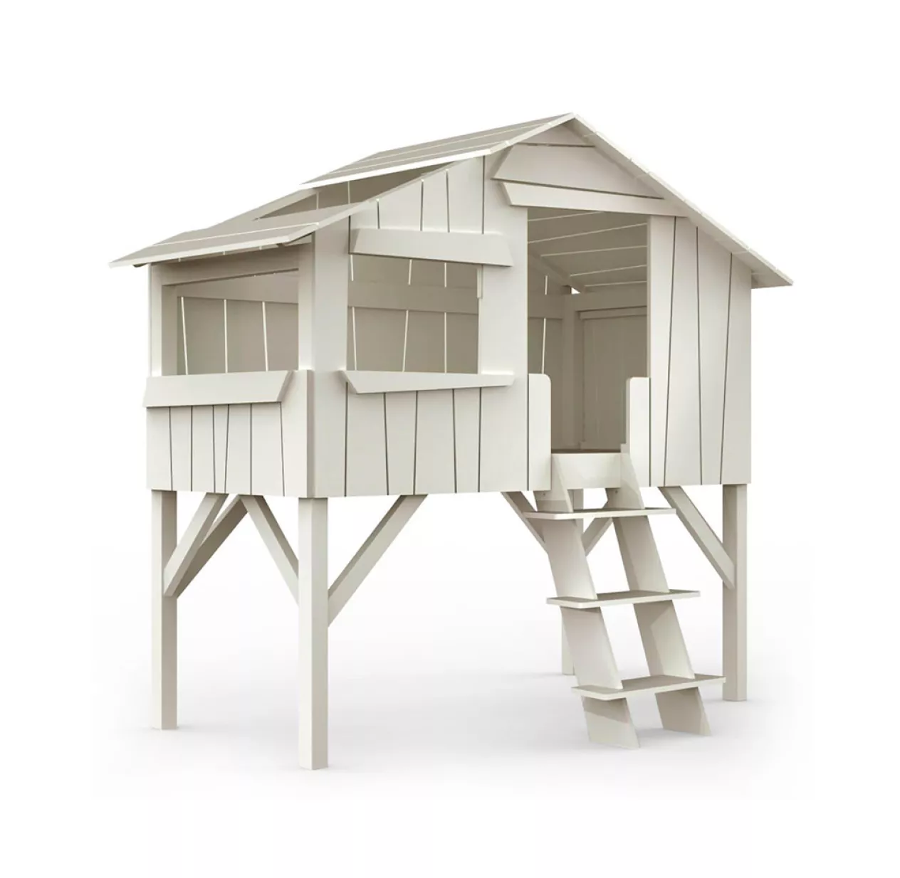 Quel enfant n’a jamais rêver de dormir dans une cabane ? Le mythique lit cabane de Mathy by Bols est perché à 80 cm de haut. Adapté à l’enfant dès 6 ans, il est équipé d’une échelle pour un accès facile. Son sommier performé en MDF mélaminé offre un couchage en 90 x 190 cm. Nous vous recommandons un matelas d’une hauteur maximum de 14 cm. Partant du principe que l’enfant passe énormément de temps dans sa chambre, la marque Mathy by Bols a eu à coeur de concevoir un mobilier qui participe à son évolution, lui permettant d’expérimenter, de jouer et d’apprendre dans une atmosphère où il se sentirait en sécurité. C’est dans cette perspective que le lit cabane Mathy by Bols a été imaginé. Il est évolutif, vous pourrez lui associer un toboggan latéral, une plate-forme avec toboggan ou encore un deuxième lit pour former un lit superposé.