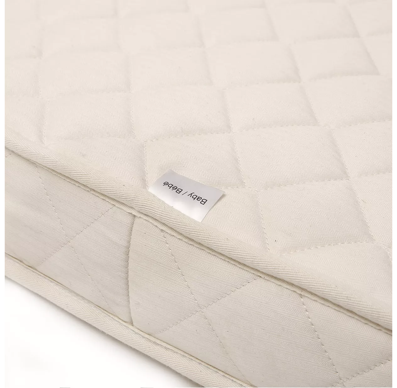 | Matière(s) | Couverture en coton biologique matelassé avec laine naturelle matelassée certifiée GOTS, Garnissage latex et fibres de coco |