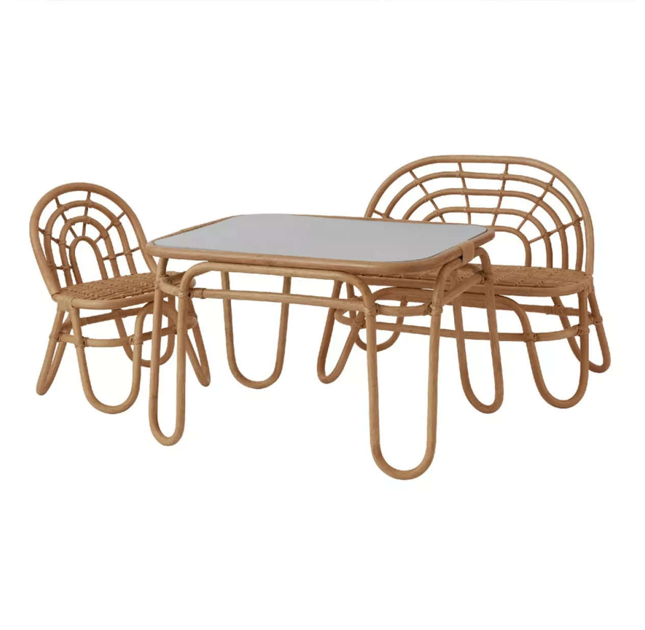Dans la famille Rainbow, voici la table ! Nous sommes définitivement fans de la nouvelle collection de mobilier enfant en rotin de OYOY. Inspirée du motif très actuel de l’arc-en-ciel, cette collection rétro décline une chaise, un banc et une table enfant à croquer ! Destinée aux enfants de 18 mois à 6 ans environ, la collection de mobilier Rainbow OYOY est idéale pour une chambre enfant d’esprit vintage, une salle de jeux ou une entrée. Son design particulièrement soigné lui autorise même une implantation dans votre salon : ) sans rien sacrifier au style de votre intérieur.