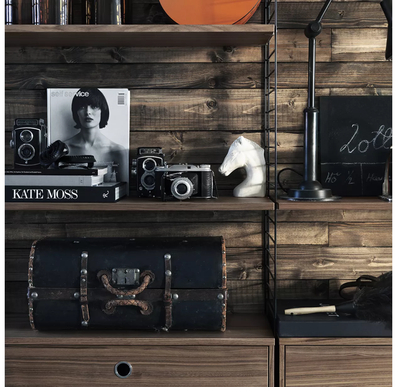Vous pouvez également rajouter les caissons de rangement, le plateau de bureau, les étagères pour magazines, les étagères métalliques, la table murale pliante et tous les autres rangements modulables String. Vous pouvez aussi mélanger les couleurs.