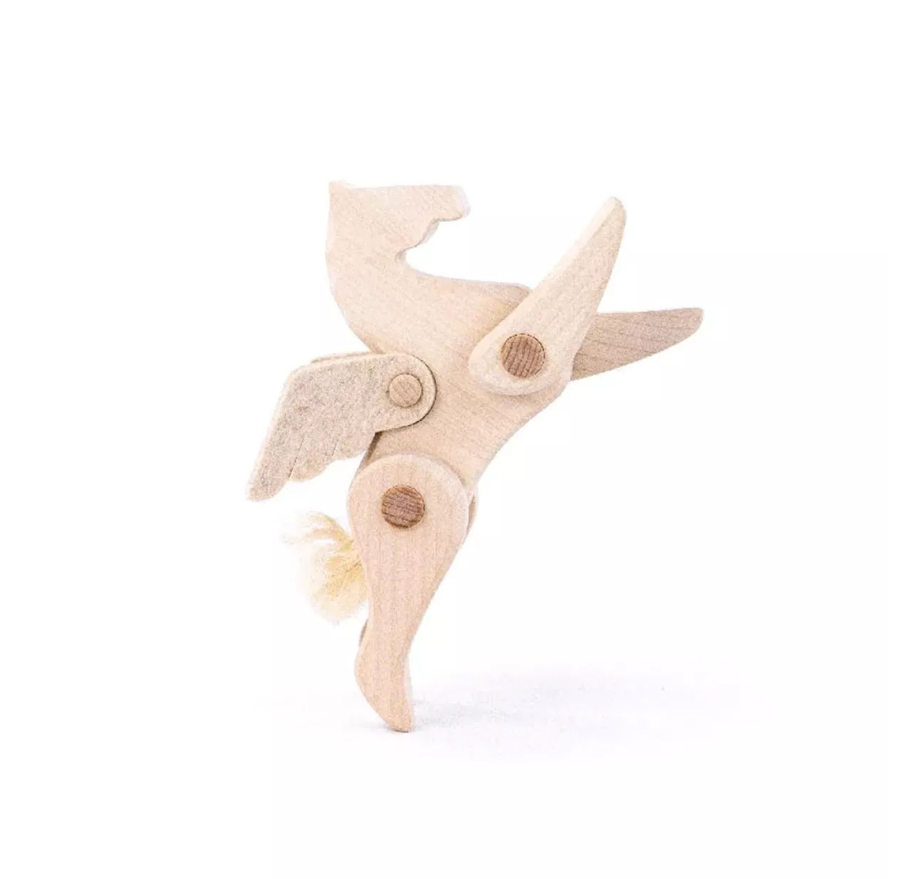 Ce magnifique cheval ailé articulé en bois naturel et feutre de laine incarne le parfait jouet en bois design. A la fois ludique et beau, il accompagnera vos enfants longtemps, dans leurs jeux imaginaires et bien au-delà, comme objet déco sur une étagère. Fabriqué en bois naturel non traité issu d’une production locale certifiée, ce jouet en bois articulé a été pensé pour les jeunes enfants dès 18 mois. Il s’associe au paresseux, au rhinocéros, à l’ours polaire et au gorille de la même collection pour constituer un univers complet particulièrement canon !