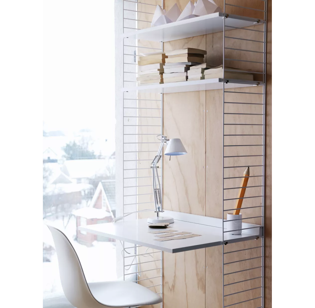 Ce plateau de bureau blanc s’adapte aux portants muraux et portants au sol String. N’hésitez plus ! Créez votre propre composition murale.