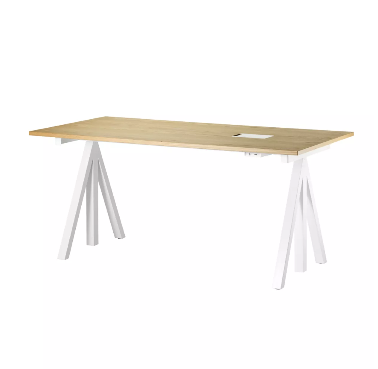 Ce plateau de bureau en chêne s’adapte au piètement en acier laqué. Il dispose d’une trappe rectangulaire permettant le passage des câbles. Le plateau est disponible en différentes largeurs et en différents coloris.