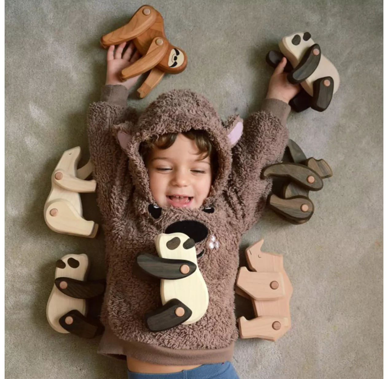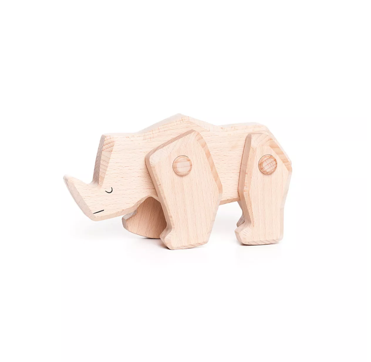 Ce magnifique rhinocéros articulé incarne le parfait jouet en bois design. A la fois ludique et beau, il accompagnera vos enfants longtemps, dans leurs jeux imaginaires et bien au-dela, comme objet déco sur une étagère. Fabriqué en bois naturel non traité issu d’une production locale certifiée, ce jouet en bois articulé a été pensé pour les jeunes enfants dès 18 mois. Il s’associe au paresseux, au gorille, au panda et à l’ours polaire de la même collection pour constituer un univers complet particulièrement canon !