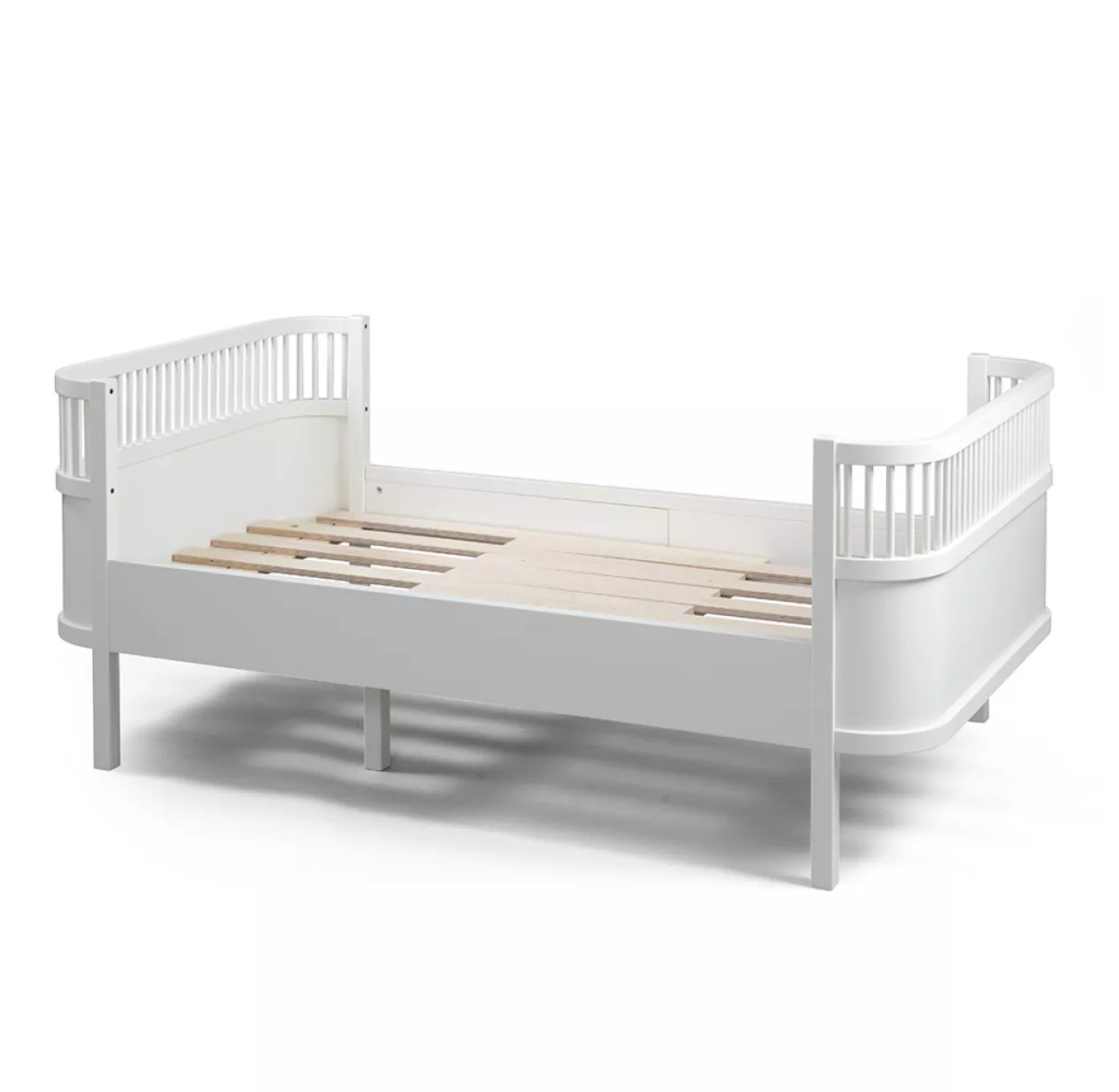 Le lit Sebra dans sa version enfant offre un sommier déployé au maximum pour offrir un couchage de 203 cm de long. Il convient à l’enfant devenu trop grand pour le lit junior.