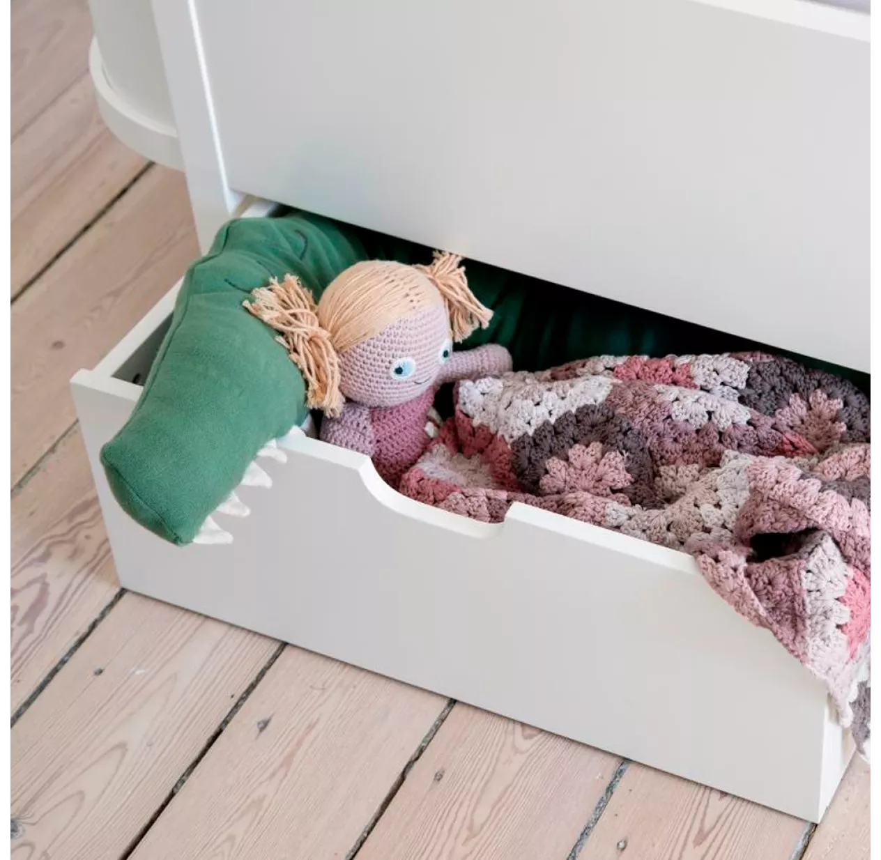 Le tiroir de rangement Sebra a été conçu spécialement pour le lit bébé évolutif de la marque. Equipé de 4 roulettes et d’une poignée incurvée discrète, il se glisse entre les pieds du lit dans sa version bébé ou junior pour stocker les jouets ou le linge de lit de votre enfant. Il offre un gain de place non négligeable tout en préservant l’esthétique du lit bébé Sebra.
