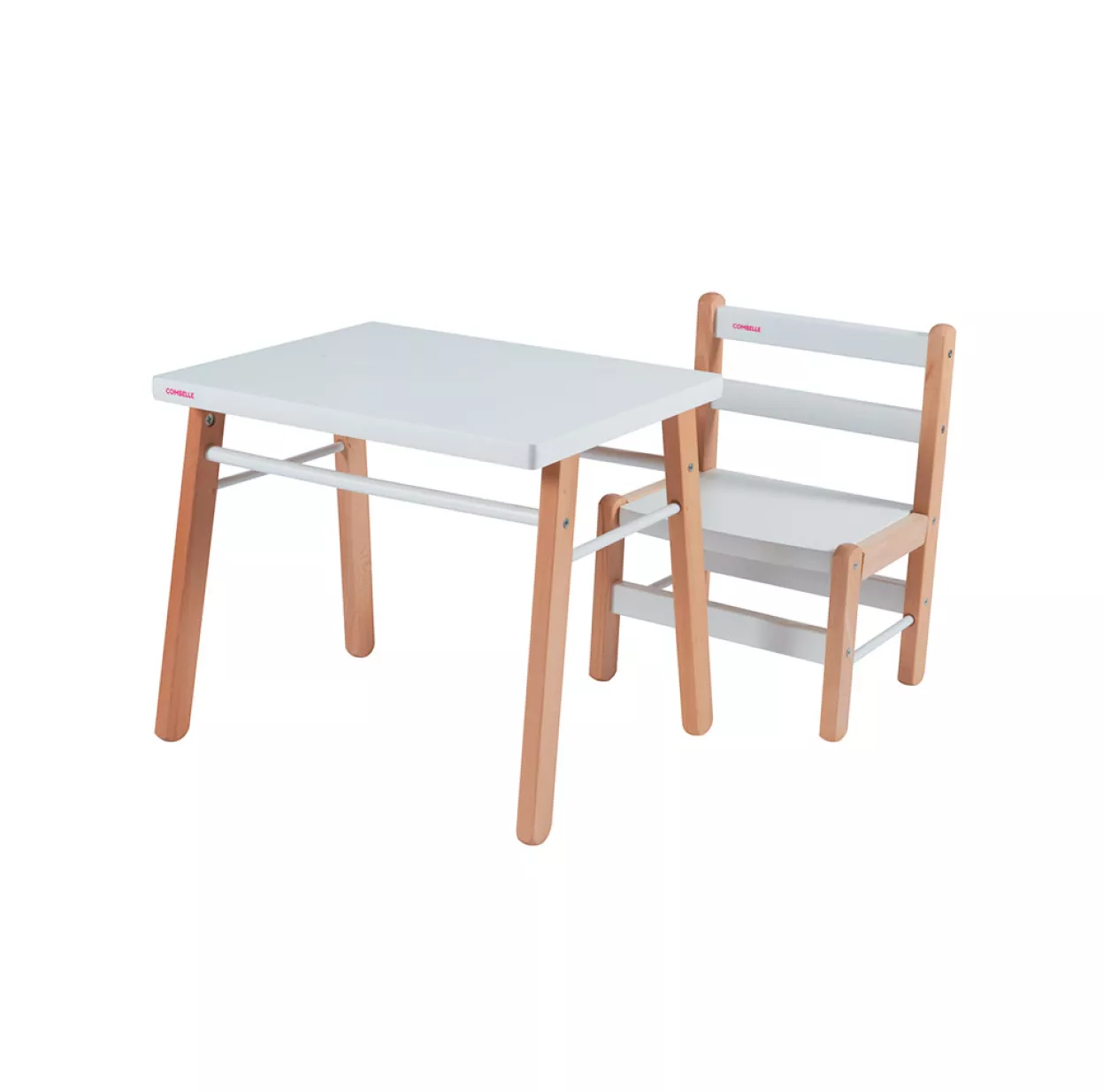Cet ensemble table et chaise enfant de Combelle offre un parfait espace créatif adapté à la taille de votre enfant jusqu’à 5 ans. La table enfant Gabriel accueillera leurs premiers dessins et jeux en autonomie. Idéal par son faible encombrement cet ensemble est aussi très léger et se déplace facilement de la salle de jeux au salon. Nous avons sélectionné la table Gabriel et la chaise enfant Louise assortie de Combelle pour leur qualité de conception, leur design sobre, leur prix attractif et leur fabrication 100% française ! Autre atout et non des moindres, le bois de hêtre utilisé pour la fabrication de cet ensemble provient de la filière bois du Cantal et départements limitrophes. Il en ressort une gestion forestière responsable compatible avec les équilibres écologiques (certification PEFC).