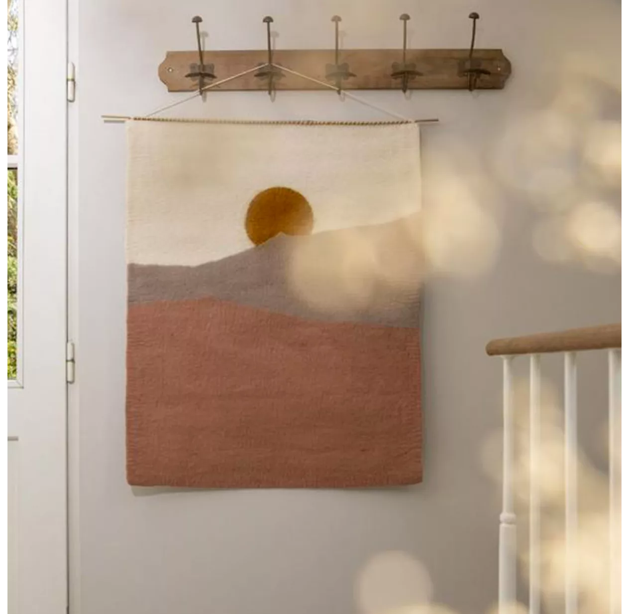 Cette magnifique tenture murale Muskhane illustrée d’un lever de soleil apportera une touche déco douillette et graphique à votre chambre enfant. Elle colle parfaitement à la tendance des tissages et tentures murales, à suspendre comme un tableau. On l’imagine parfaitement au-dessus d’un lit dans une chambre enfant au design doux et épuré. La tenture Landscape propose une association de couleurs douces pour s’harmoniser avec votre déco !