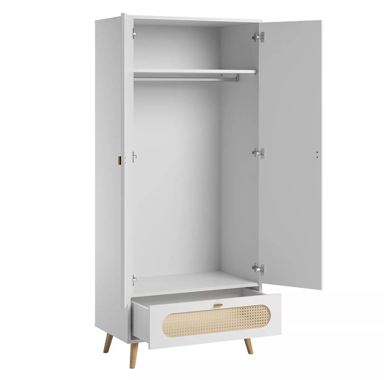 L’armoire Canne de Vox s’inspire de la tendance déco rétro du mobilier en cannage. Un style élégant et vintage, pour une chambre de bébé ou d’enfant actuelle. L’armoire Canne s’associe à toute les pièces de la collection pour offrir une chambre complète. Son aménagement intérieur est optimal : 1 penderie, 1 étagère et 1 tiroir inférieur vous permettent de ranger les affaires de vos enfants de manière optimale.